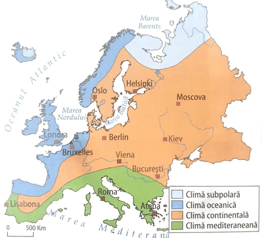 poziția geografică (36⁰- 71⁰ latitudine Nord) cea mai mare parte a Europei, are climate temperate, iar în partea nordică este climat rece;