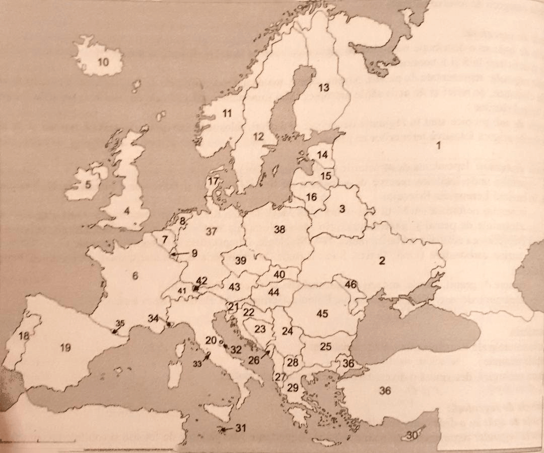 Europa este formată din 46 de state, dintre care 6 teritorii sunt dependente: Gibraltar, Insulele Man, Insulele Normande(Marea Britanie), Insulele Svalbard și Insulele Jan Mayer (Norvegia), Insulele Feroe (Danemarca).Enclave: San Marino, Vatican (Italia); Exclave: Kalinigrad (Rusia).