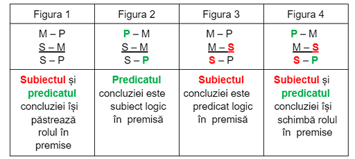 Aranjamentele posibile ale termenilor silogismului produc următoarele figuri silogistice:
